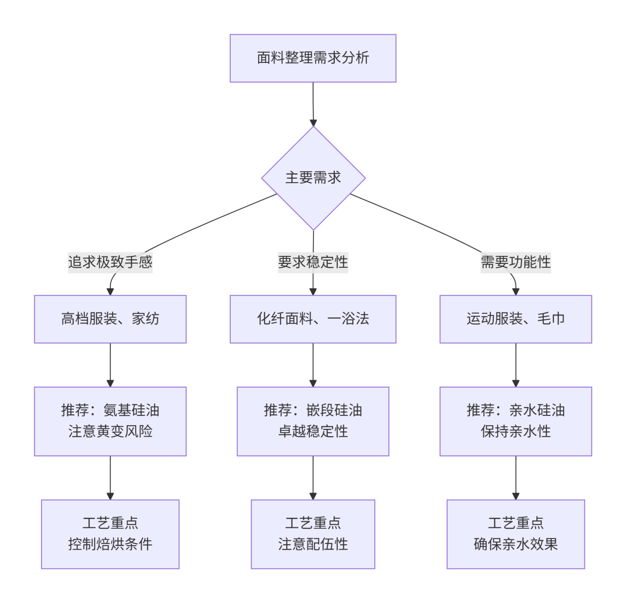 需要综合考虑织物类型、手感要求、工艺条件和最终用途。例如,高档服装可选用氨基硅油追求极致手感,而运动服装则更适合亲水硅油。