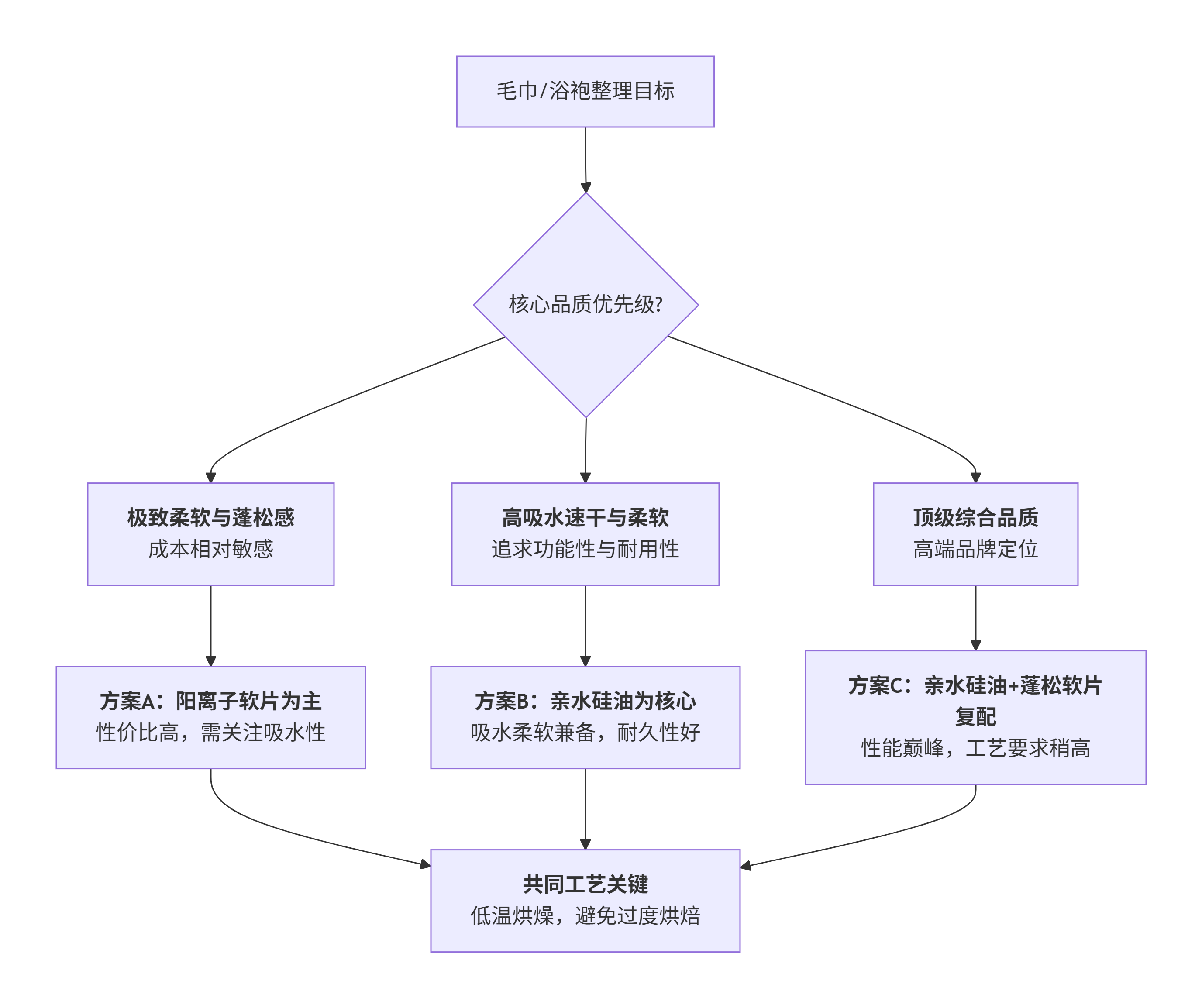 实现“蓬松、柔软、吸水”三位一体的关键在于放弃单一产品思维,采用系统的复配方案。下图展示了基于不同品质要求的决策路径: