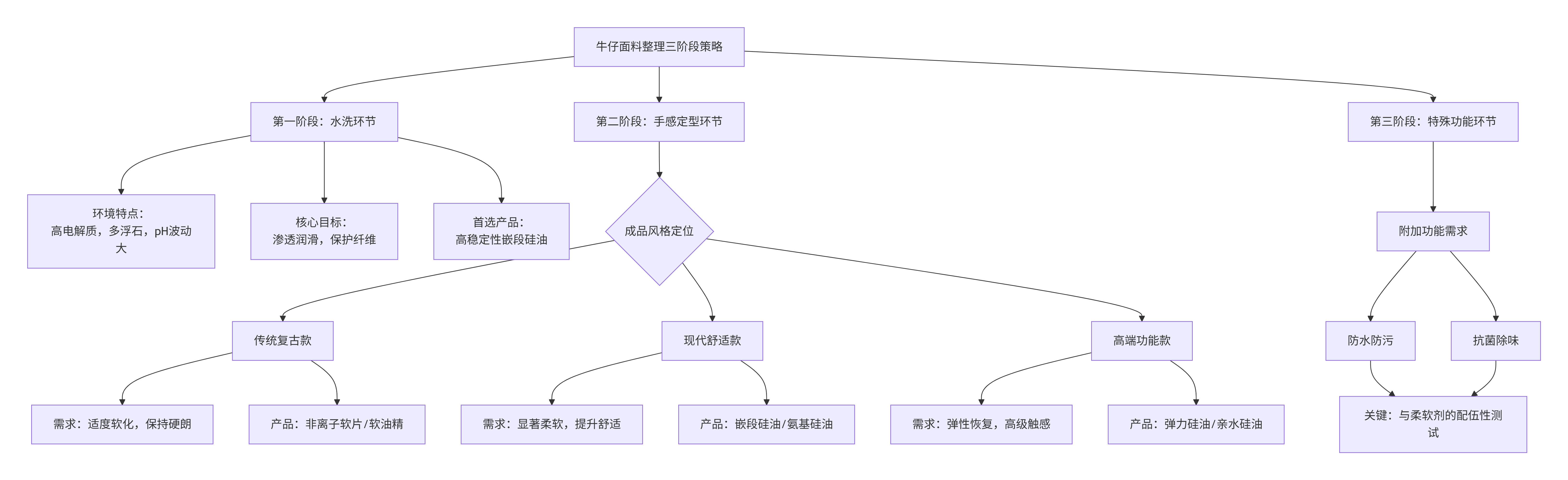 成功的牛仔整理必须贯穿从退浆酵洗到最终成品的全流程。不同阶段的目标与选型策略截然不同: